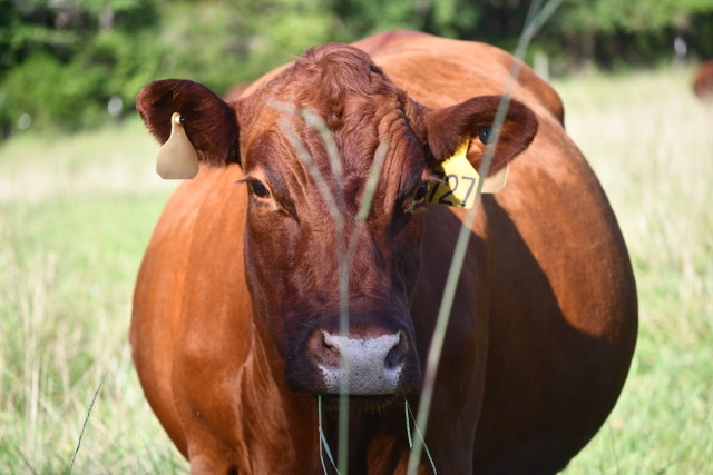 Our cattle move almost every day, providing them with fresh, nutritious forage at all times. This also improves the land. A large number of cattle concentrated on a small area of grass will do many beneficial things. The cattle will be forced to graze everything, from the tastiest clover to the weeds and other grasses growing in the field. Their hooves aerate the soil while their manure provides fertilizer. And then they’re off the land, not to come back to that same area for many weeks or months, so that the land can rest, recover and regenerate growth in the grasses. This improves soil health, makes for healthier root systems, greater moisture retention, a livelier microbiome, etc. Over time, healthier pastures with increased topsoil can sequester carbon at a higher rate.
